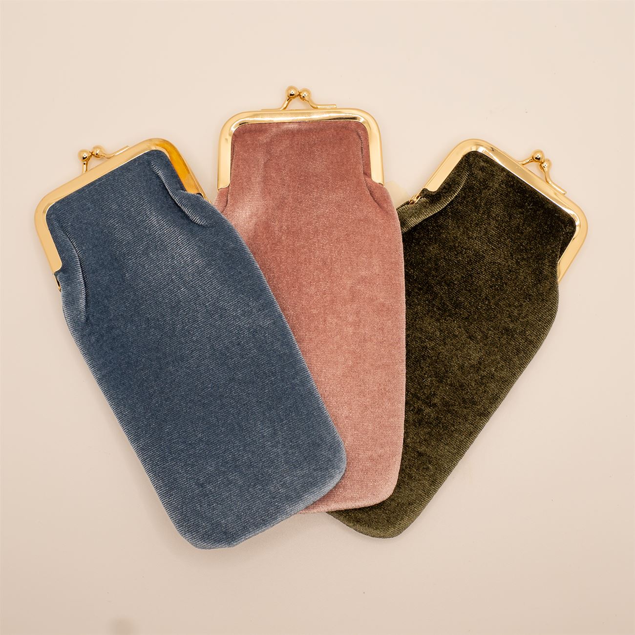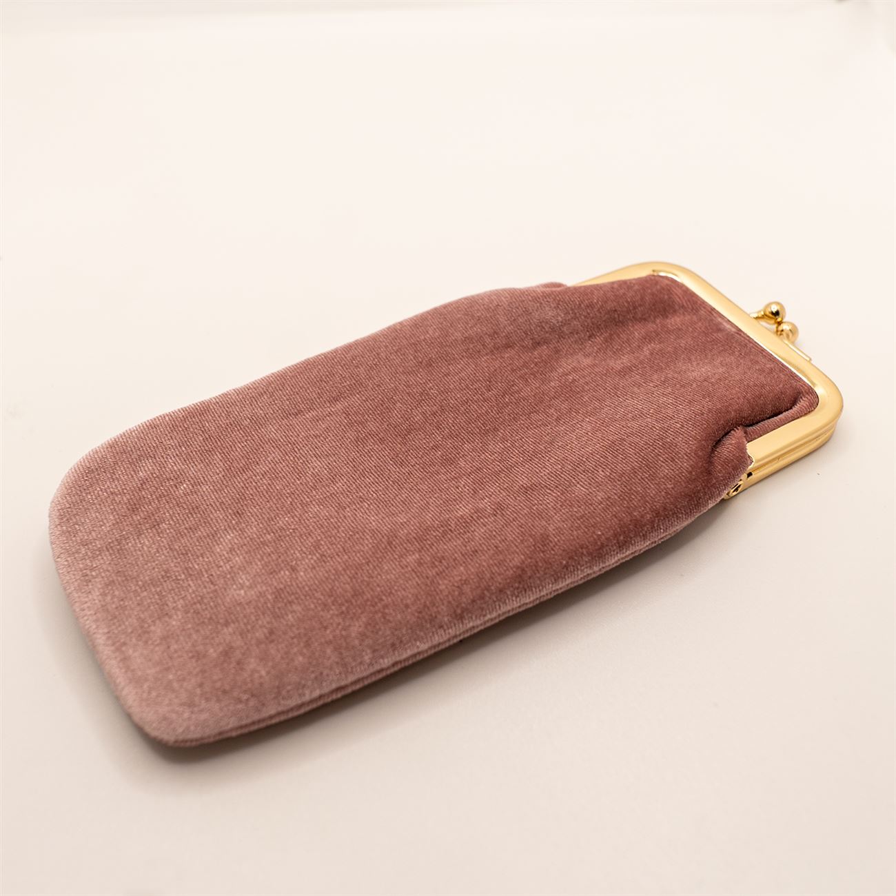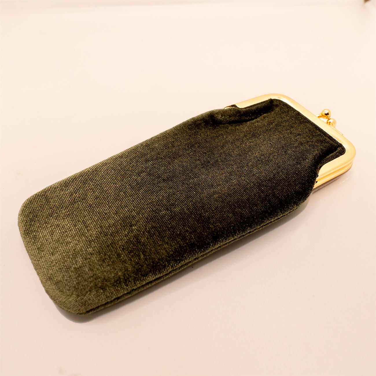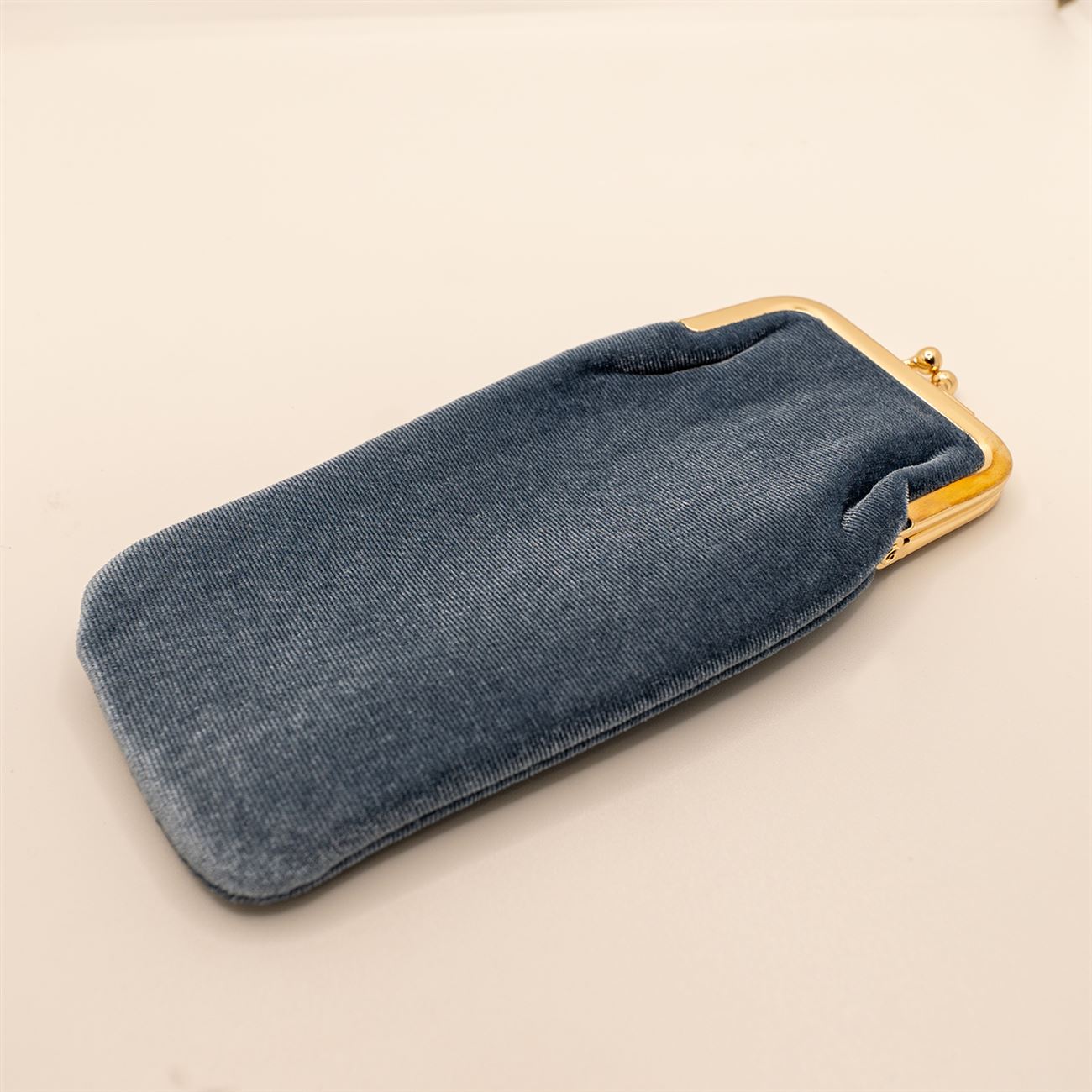 Astuccio vintage in morbido tessuto con chiusura metallica dorata ad archetto.