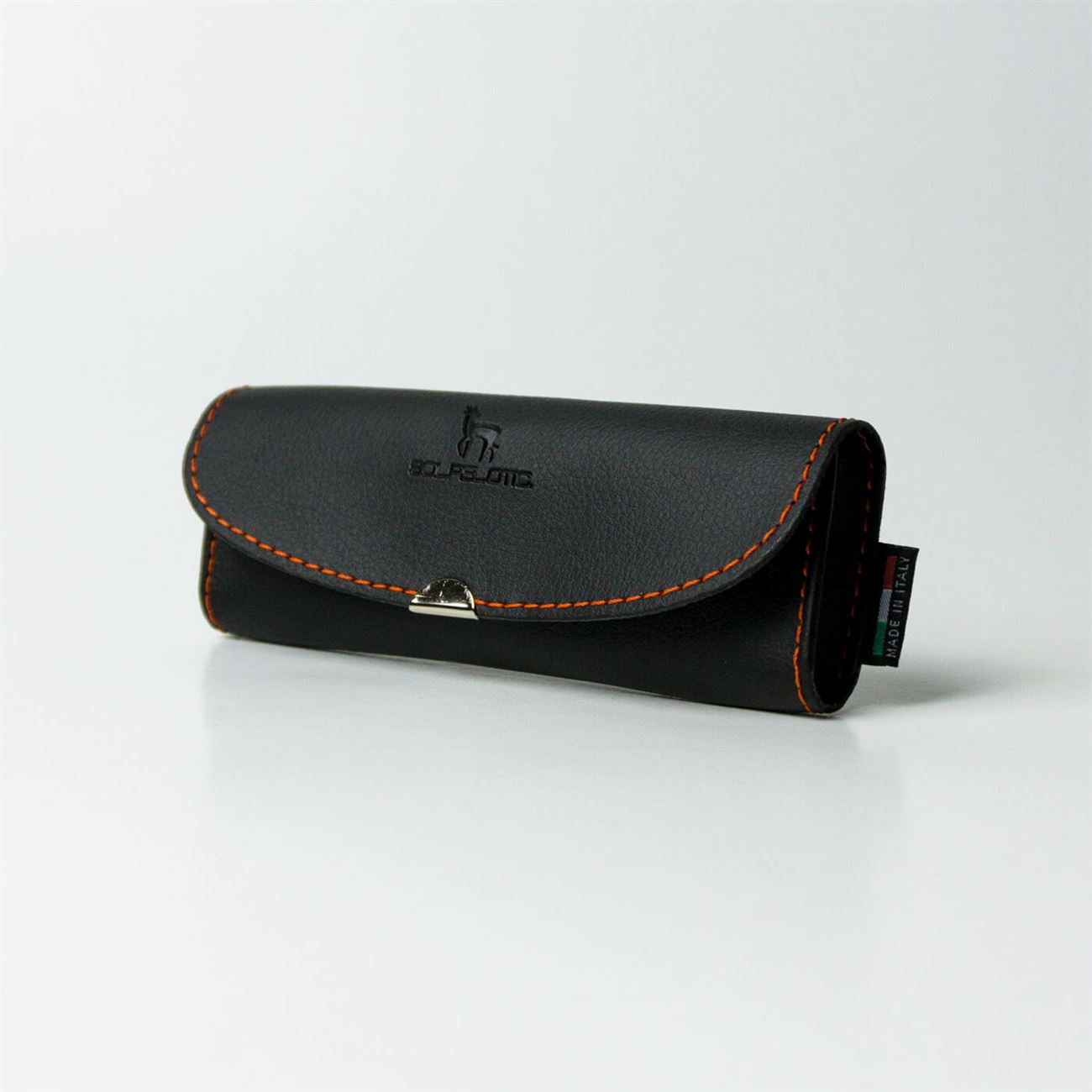 Astuccio in ecopelle per occhialiDimensioni mm 150x60x20. Astuccio femminile per occhiali da lettura con soffietti laterali, chiusura a patella con velcro.