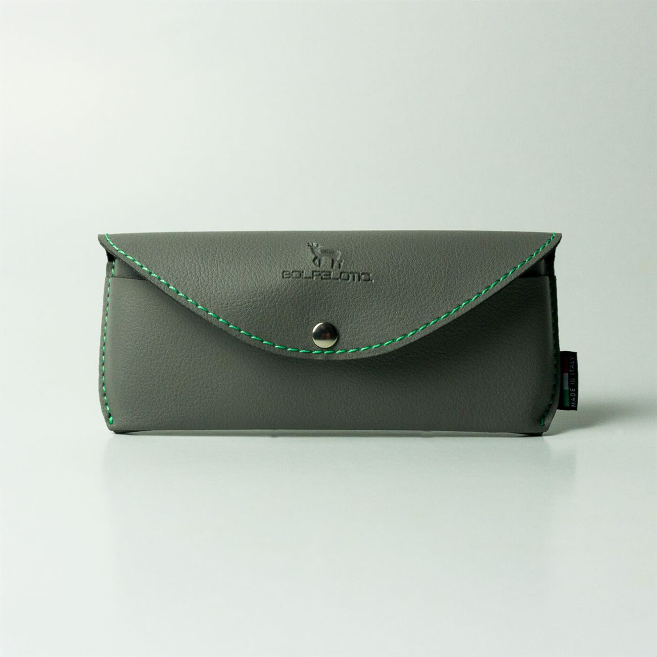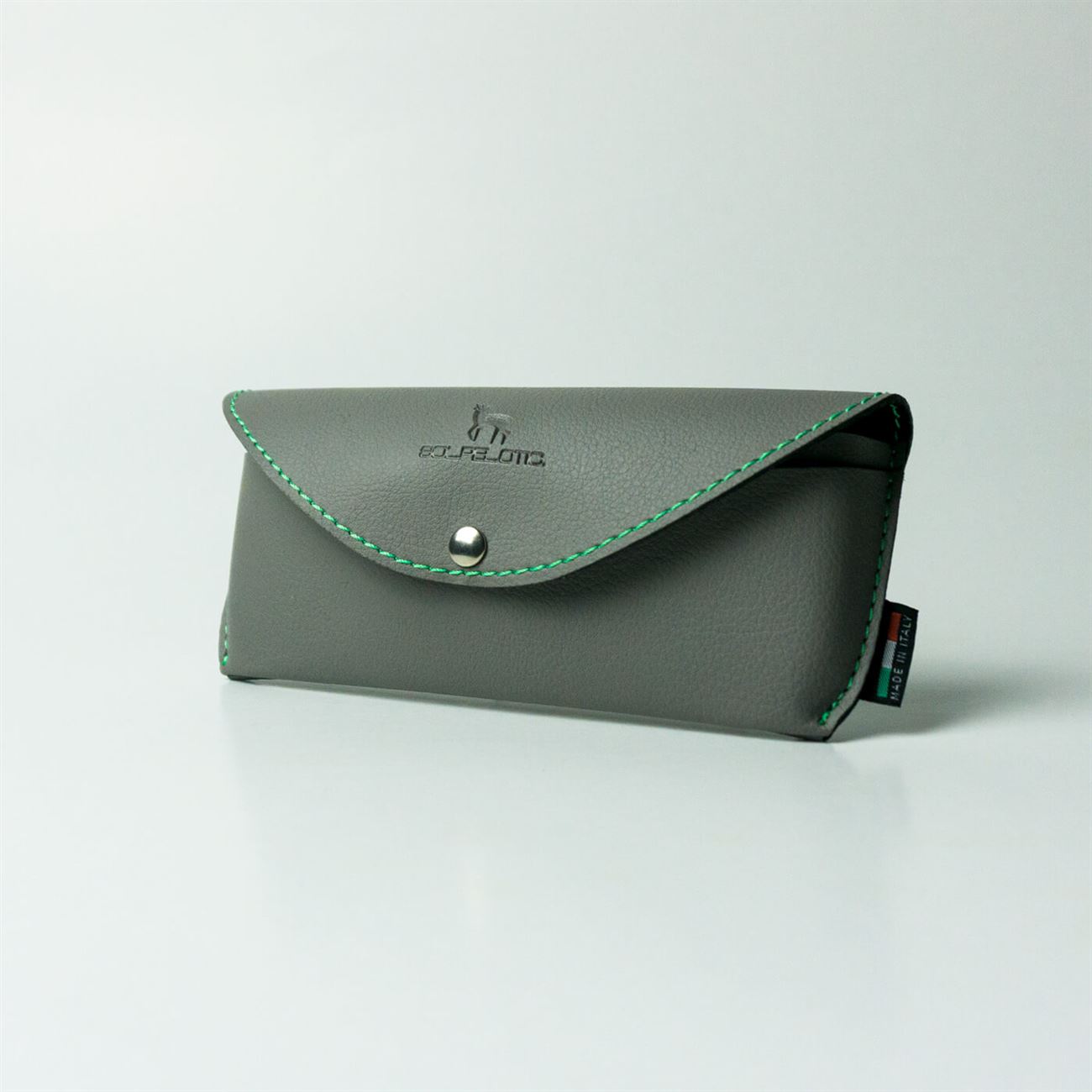 Astuccio in Ecopelle per occhiali con taschino per lenti Clip OnDimensioni mm 160x70x25. Astuccio unisex per occhiali da vista e da sole con vaschetta interna e taschino anteriore per lenti con clip magnetico.