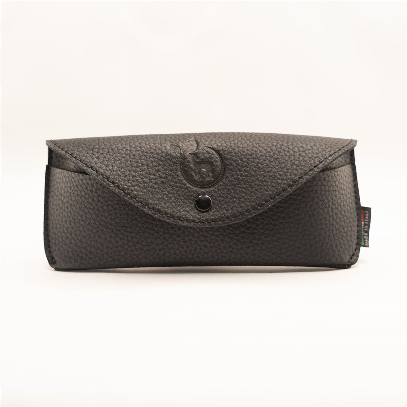 Astuccio in Ecopelle per occhiali con taschino per lenti Clip OnAstuccio unisex per occhiali da vista e da sole con vaschetta interna e taschino anteriore per lenti con clip magnetico in ecopelle eco-sostenibile.
