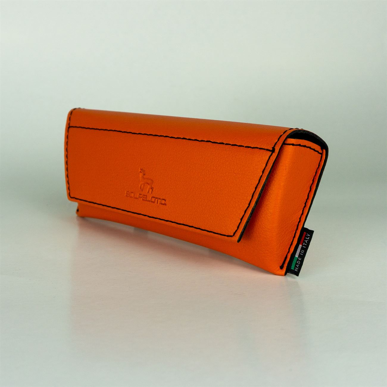 Astuccio in ecopelle per occhiali, con vaschetta interna.Dimensioni mm 165x70x30. Astuccio femminile per occhiali da lettura con vaschetta interna e chiusura a patella con bottone a pressione.