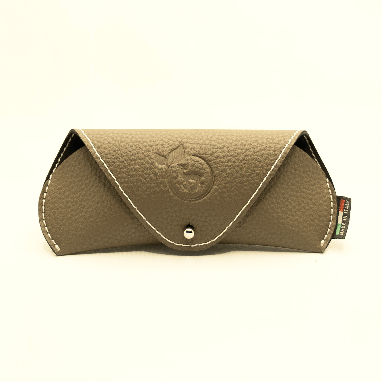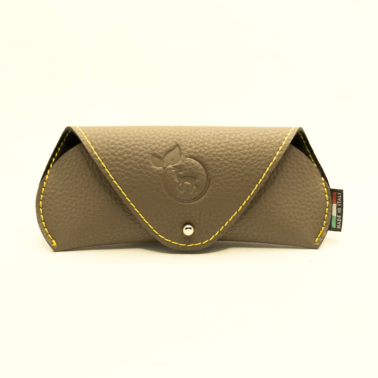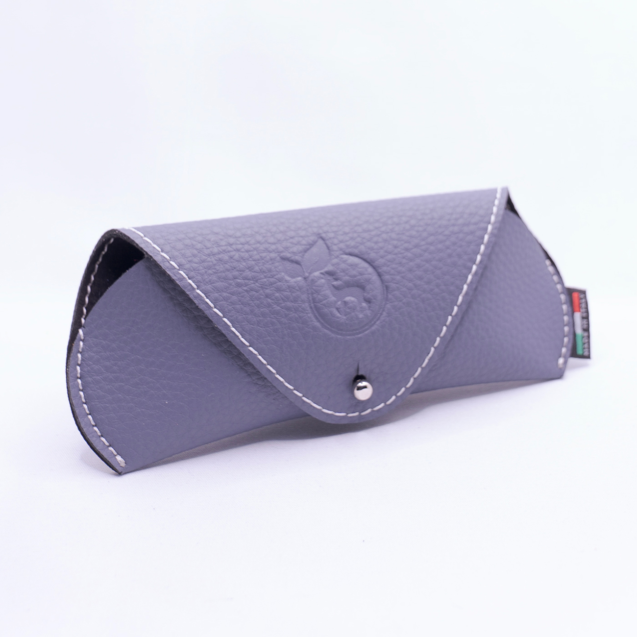 Astuccio in ecopelle eco-sostenibile per occhiali da vista, con particolari cuciture "a treccia".