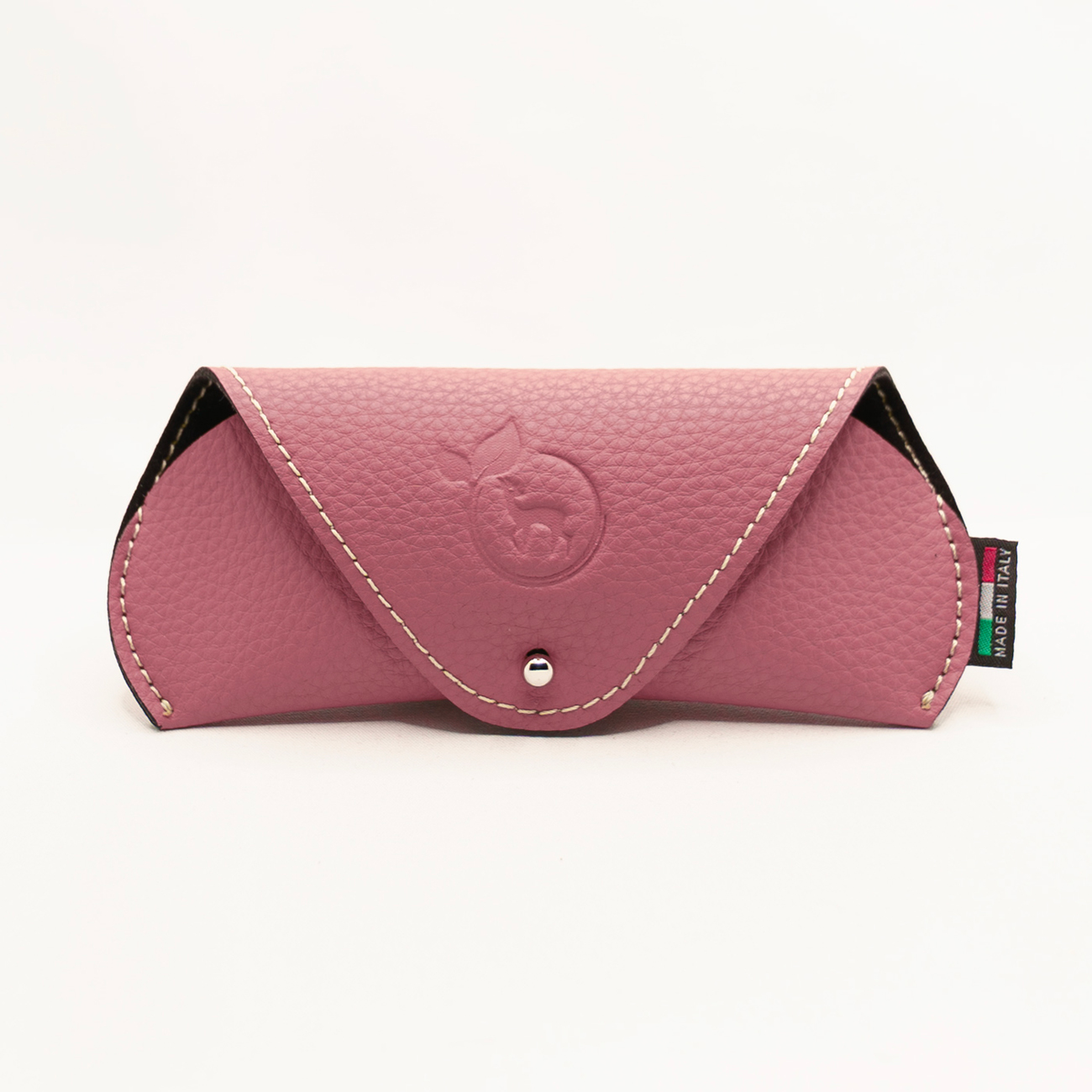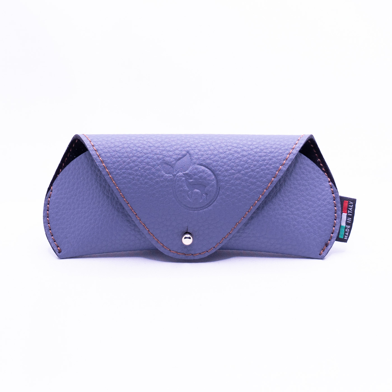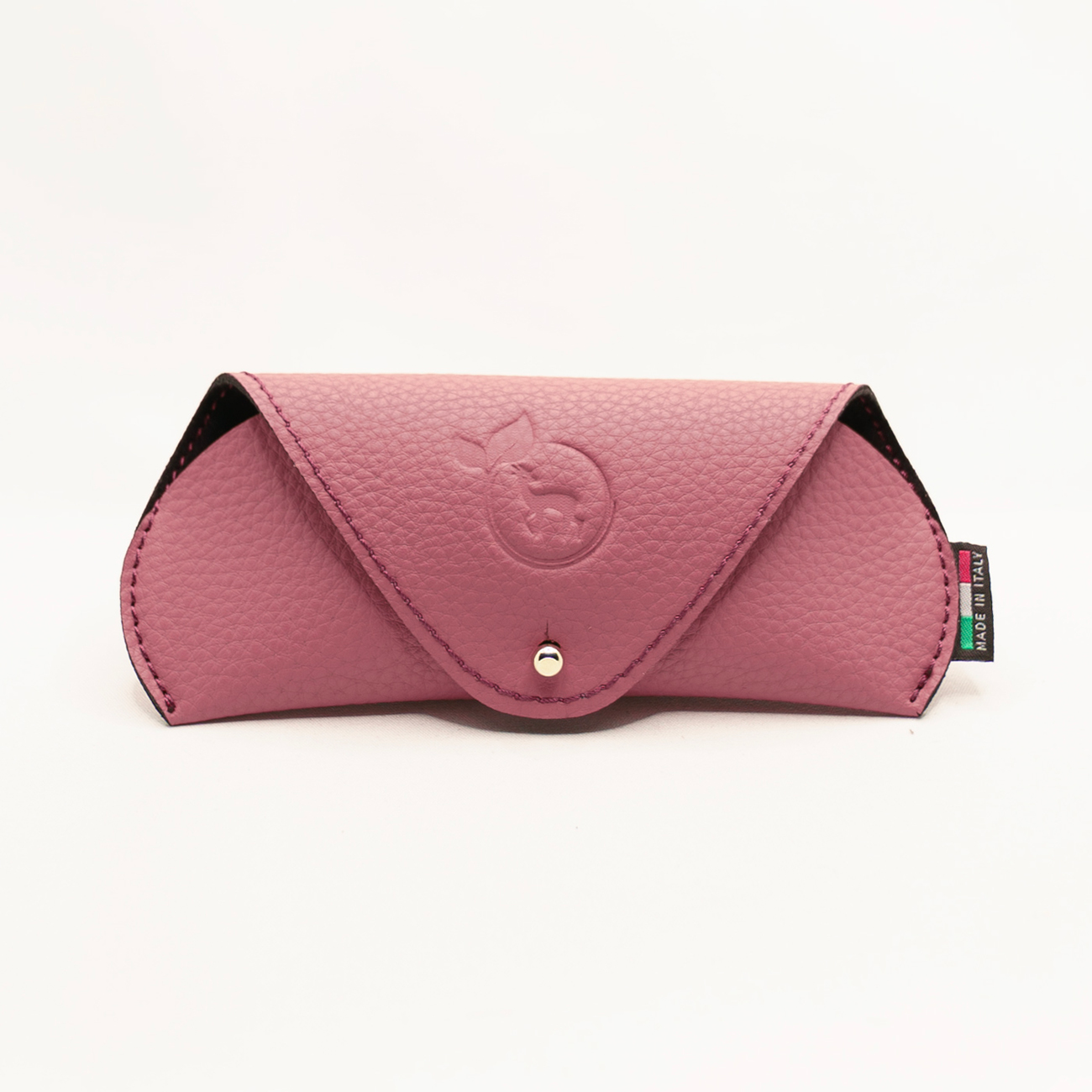 Astuccio in ecopelle eco-sostenibile per occhiali da vista, con particolari cuciture "a treccia".