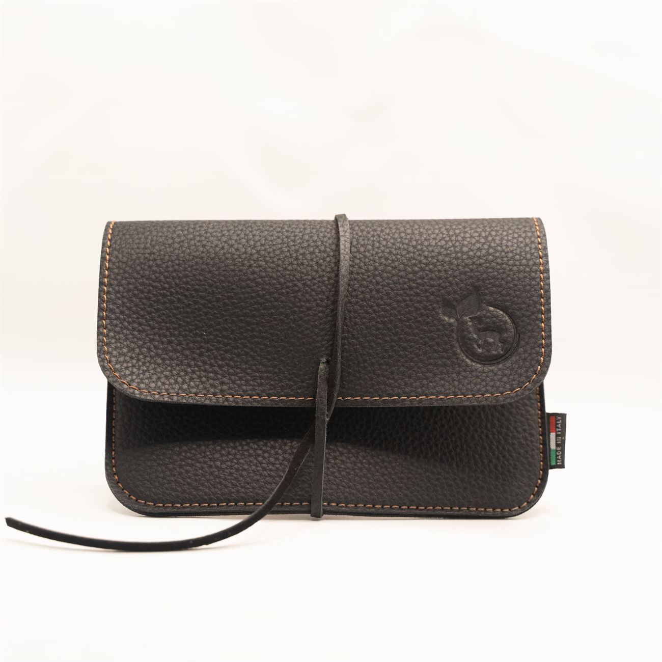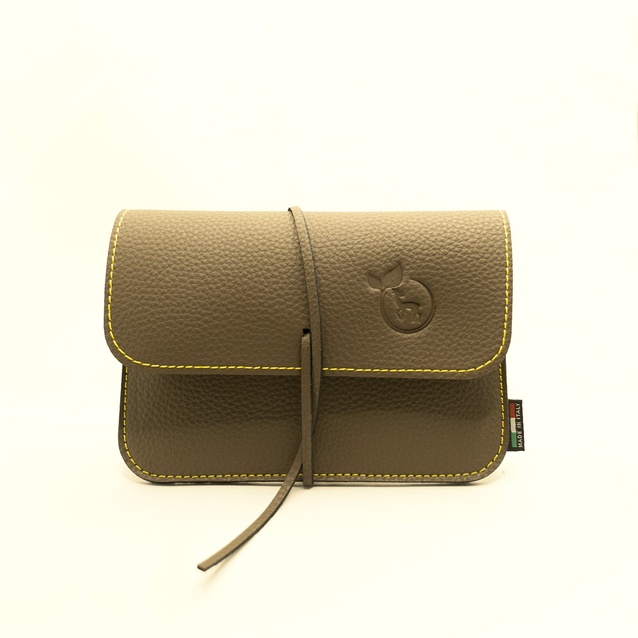 Astuccio in ecopelle eco-sostenibile per occhiali da vista e da sole, con particolari cuciture "a treccia".