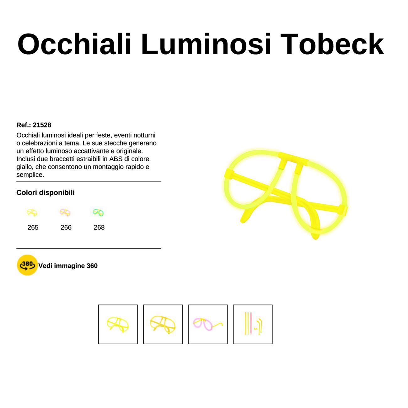 Occhiali luminosi ideali per feste, eventi notturni o celebrazioni a tema. Le sue stecche generano un effetto luminoso accattivante e originale. Inclusi due braccetti estraibili in ABS di colore giallo, che consentono un montaggio rapido e semplice.