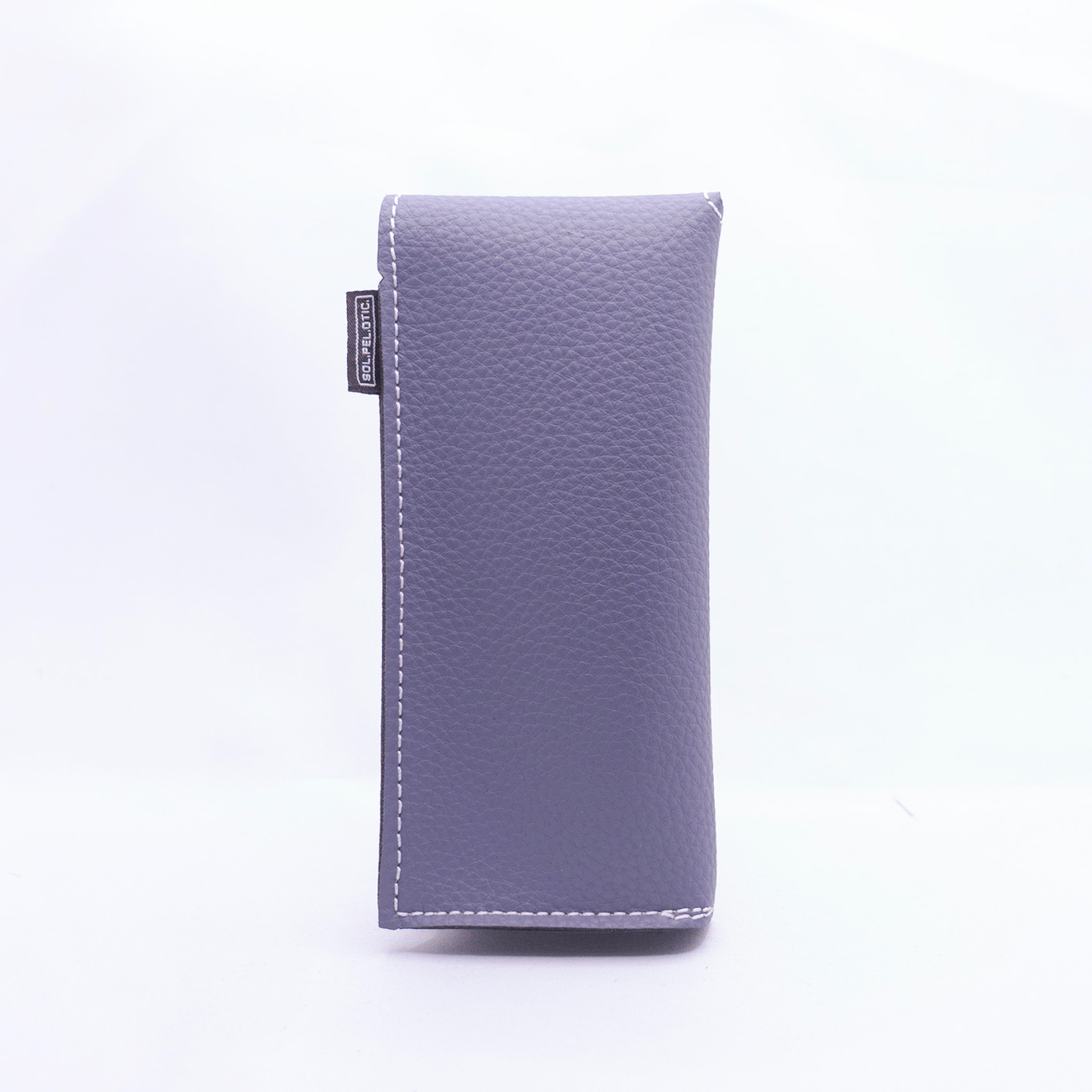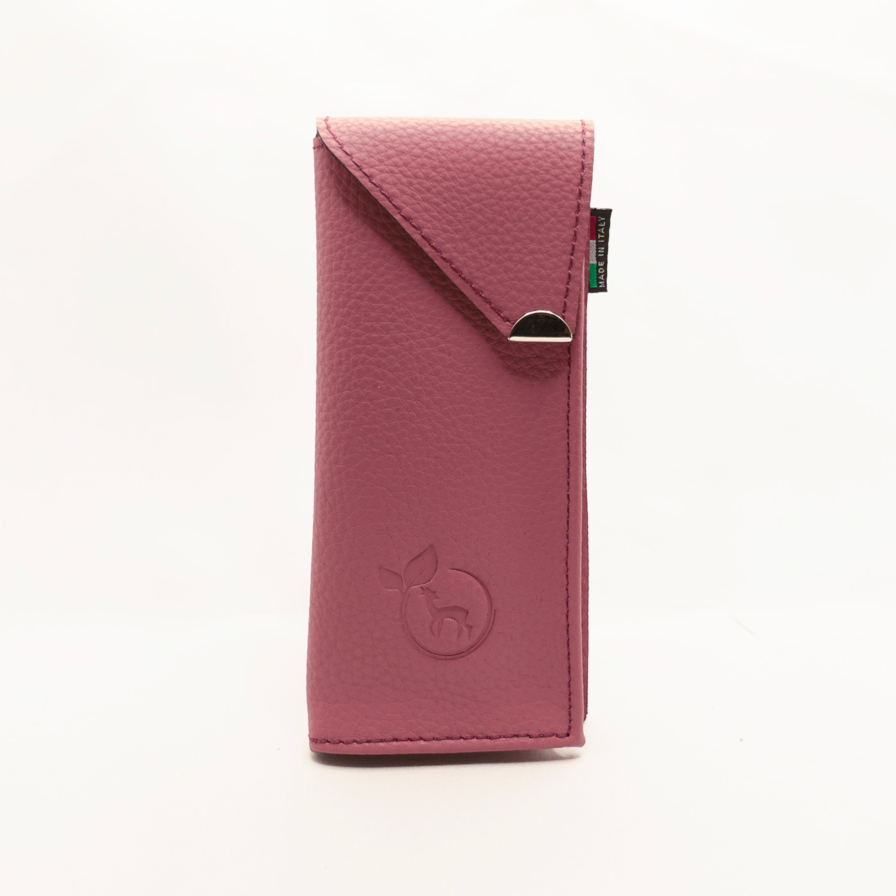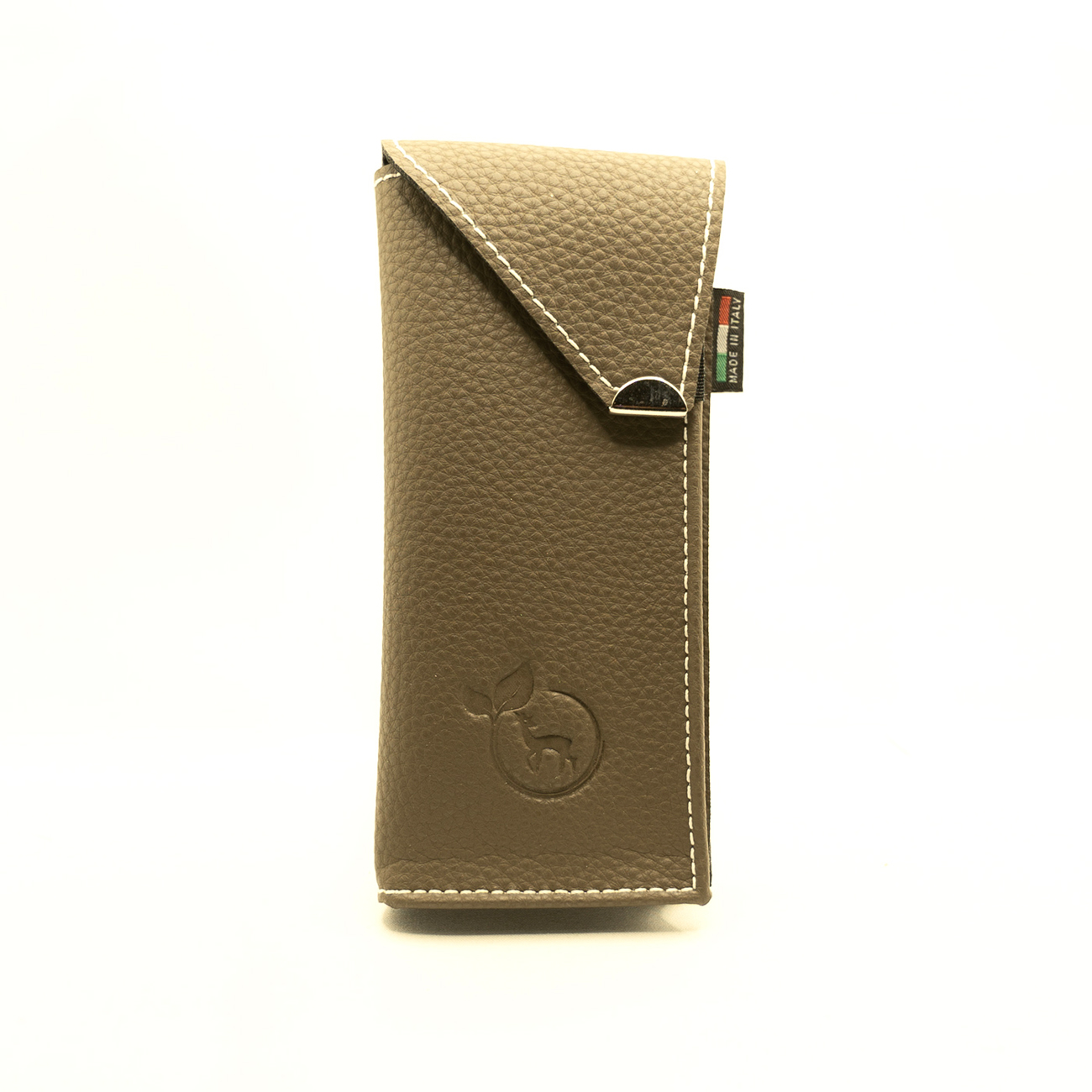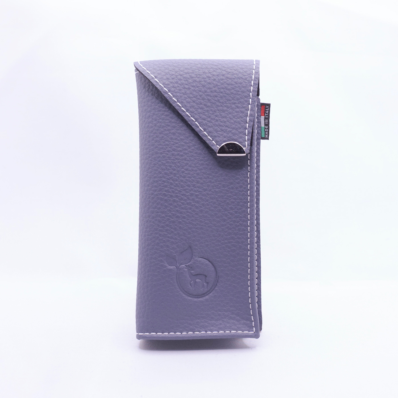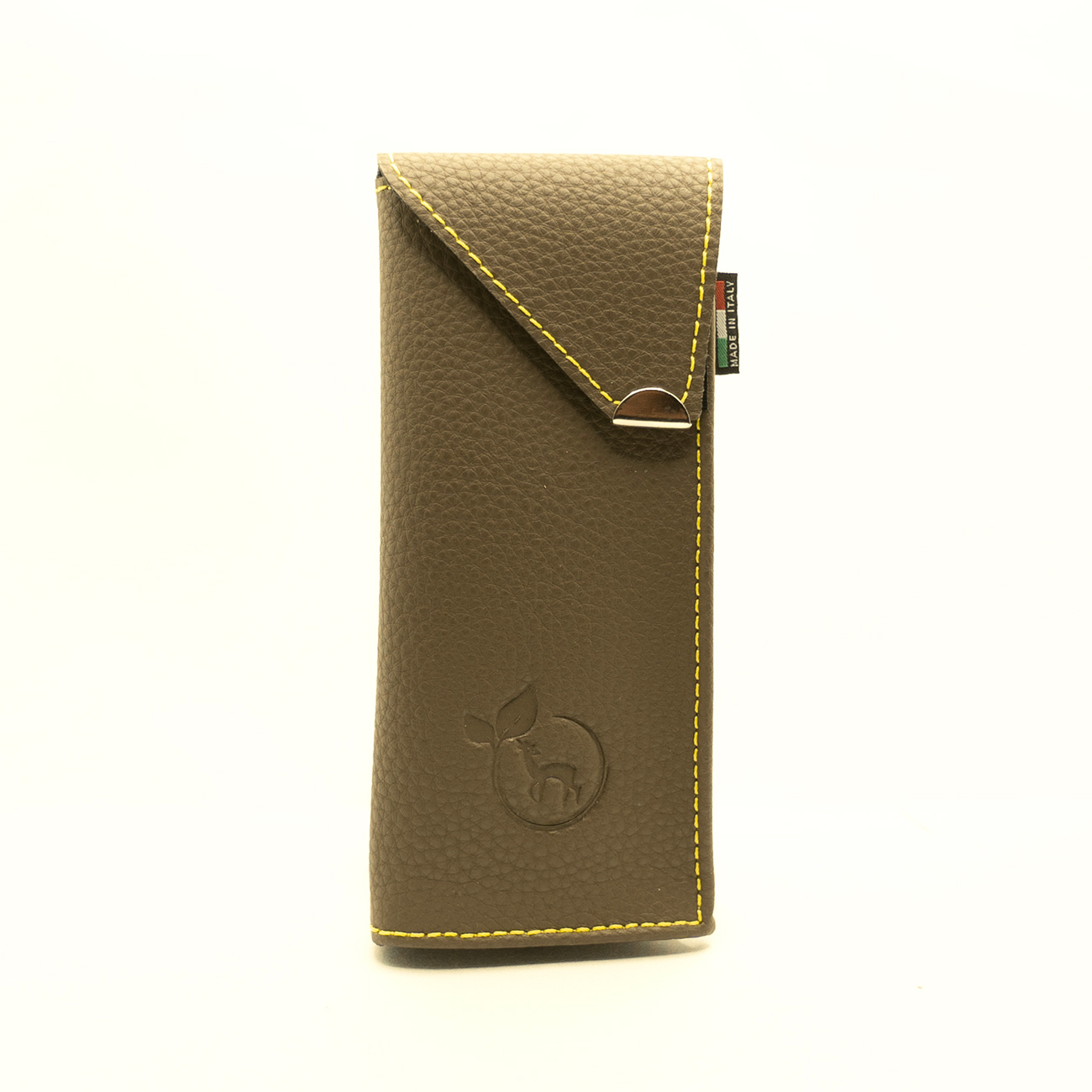 Astuccio uomo in ecopelle eco-sostenibile effetto soft. Con patellina di chiusura e fermapunto metallico.