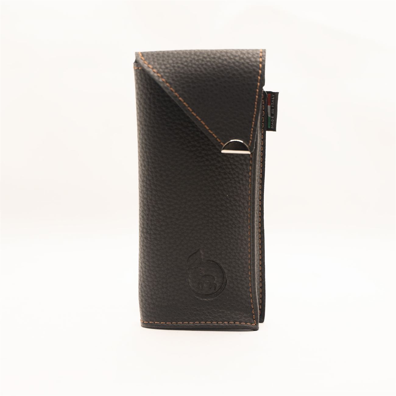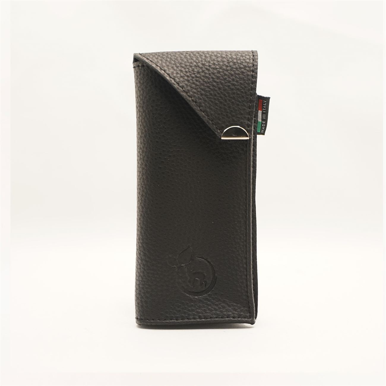 Astuccio in ecopelle per occhiali da vistaAstuccio uomo in ecopelle eco-sostenibile effetto soft. Con patellina di chiusura e fermapunto metallico.