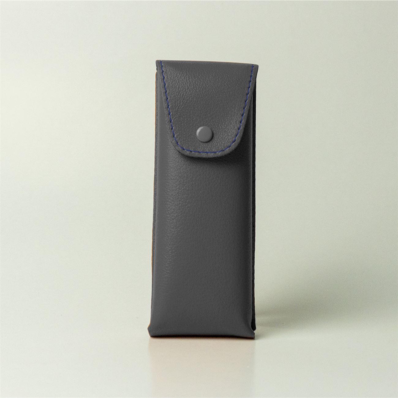 Dimensioni mm 55x155x20. Astuccio maschile per occhiali da vista, con vaschetta interna, chiusura a patella con bottone a pressione.