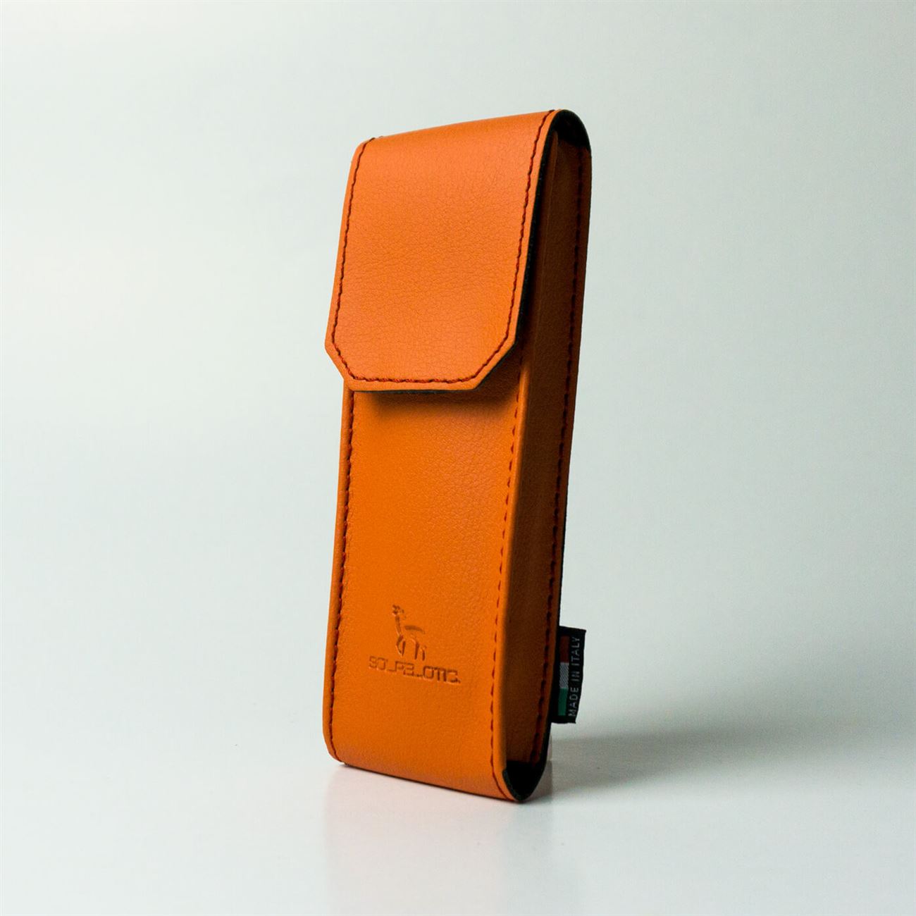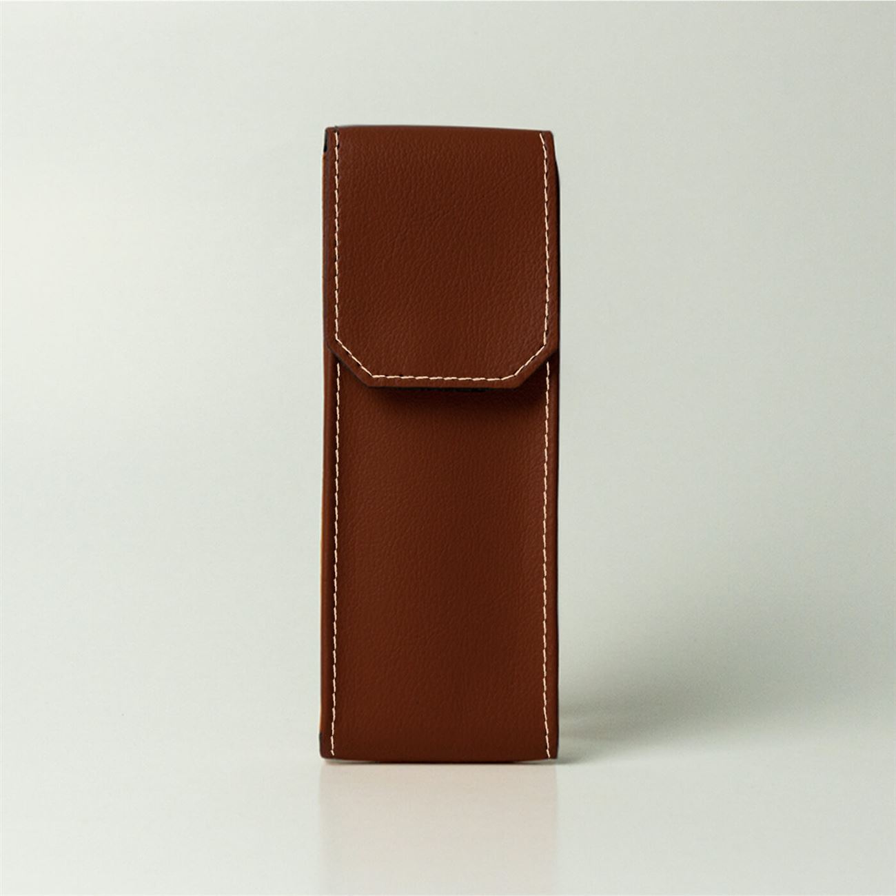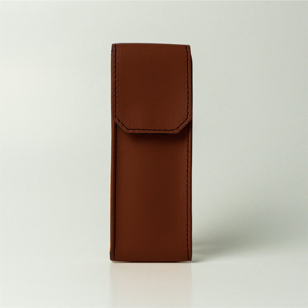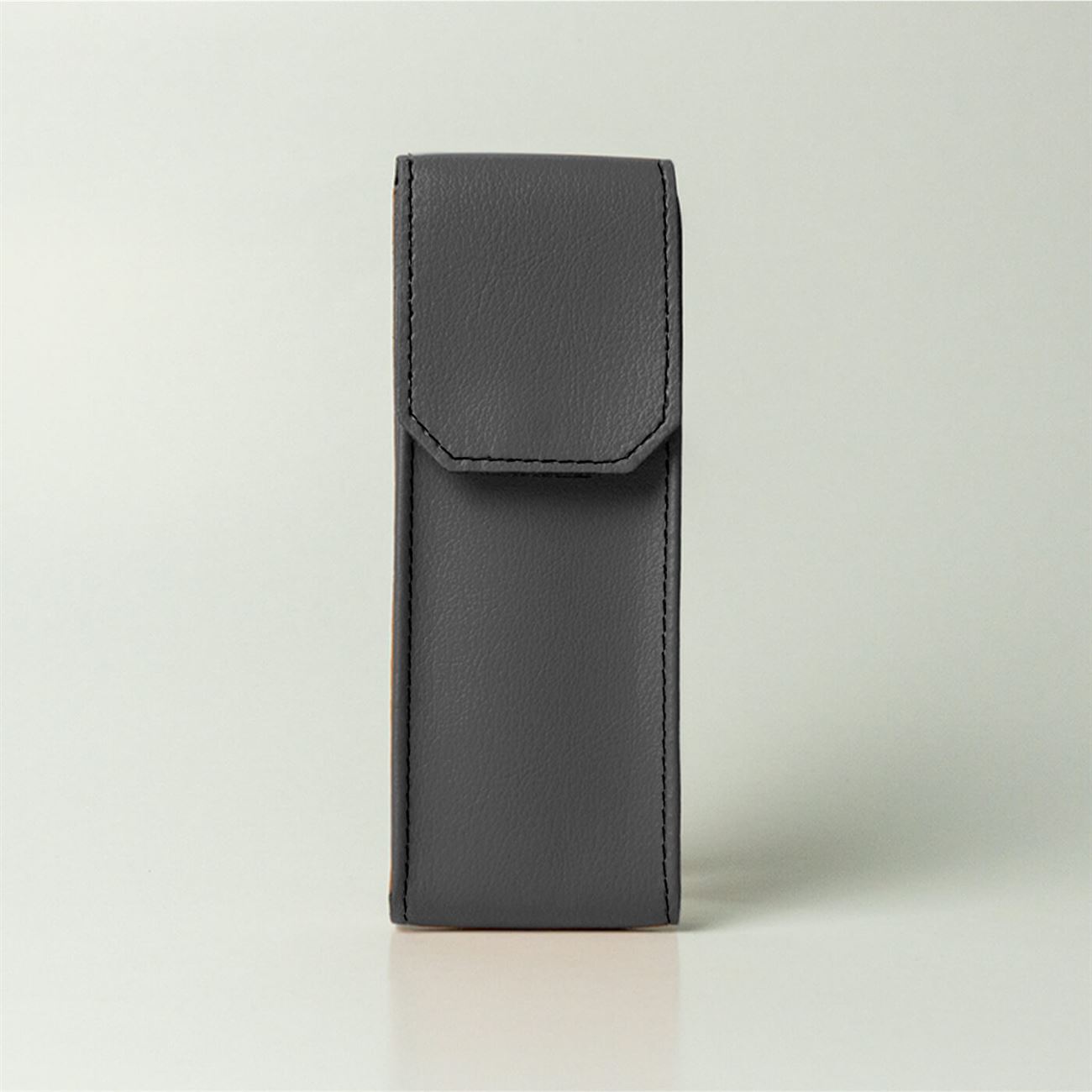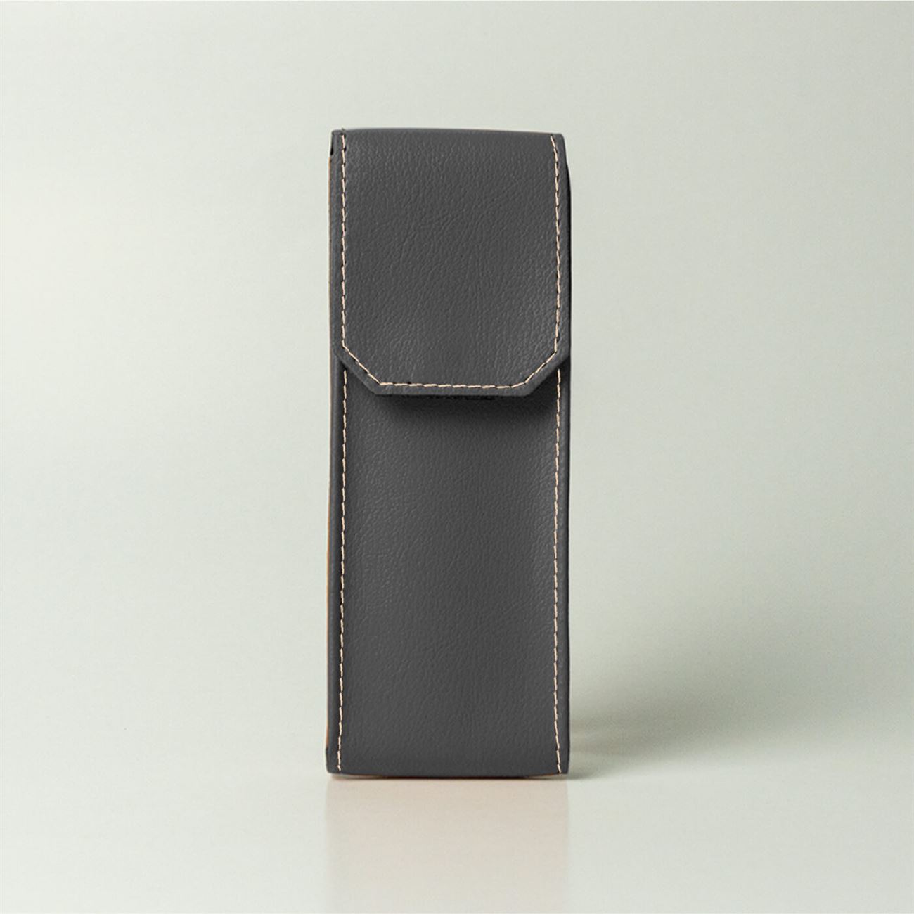 Astuccio in ecopelle per occhialiDimensioni mm 55x155x18. Astuccio maschile per occhiali da vista, con soffietti laterali e chiusura a patella con velcro.