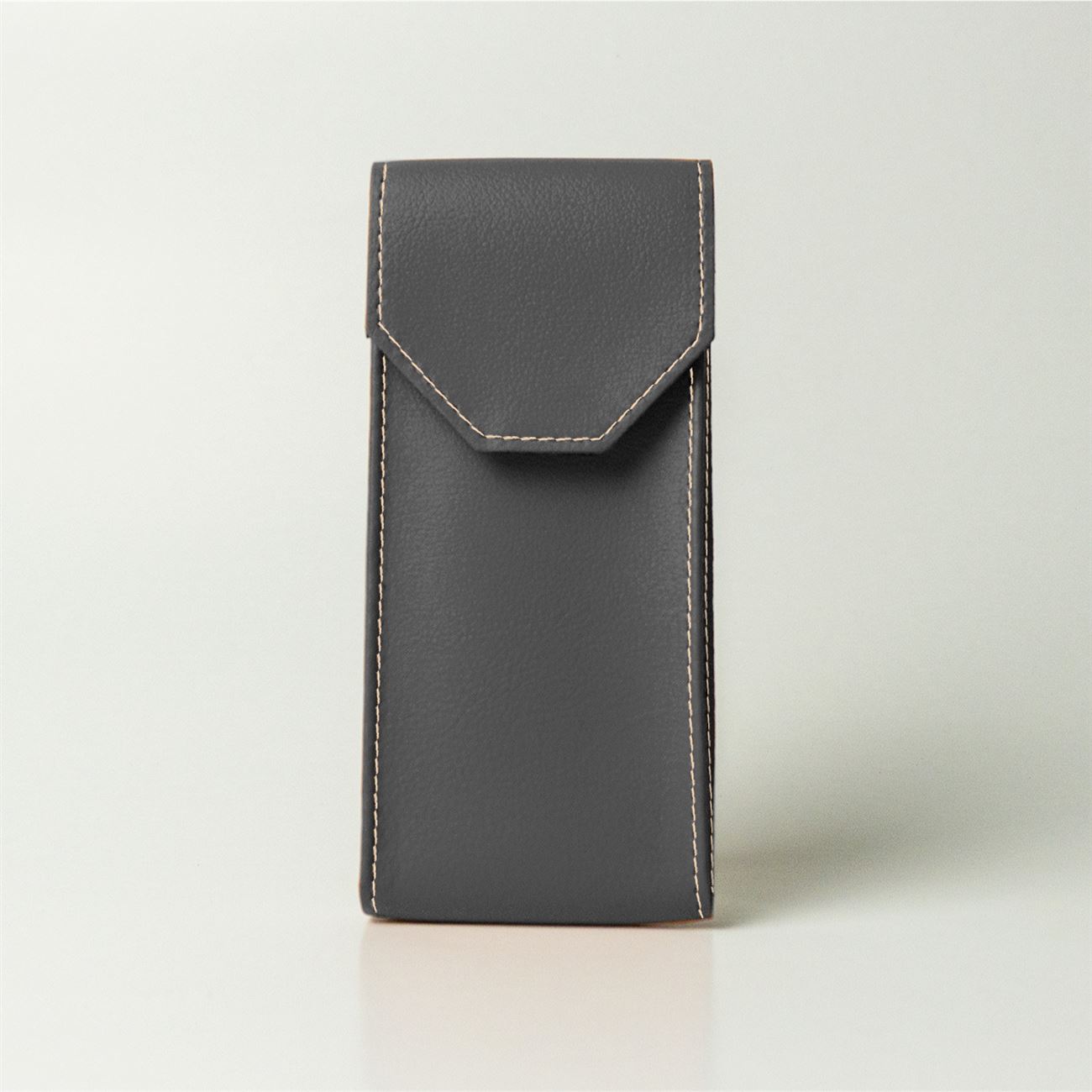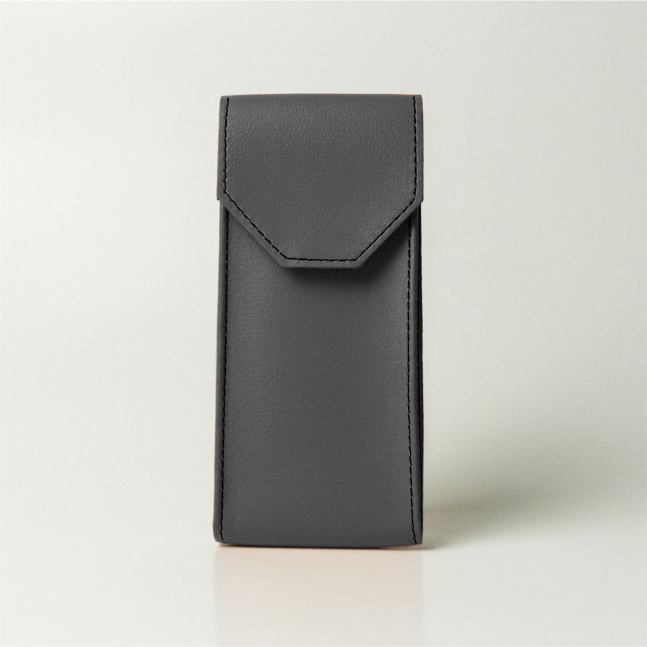 Dimensioni mm 60x165x33. Astuccio maschile per occhiali da vista, con soffietti laterali e chiusura a patella con velcro.
