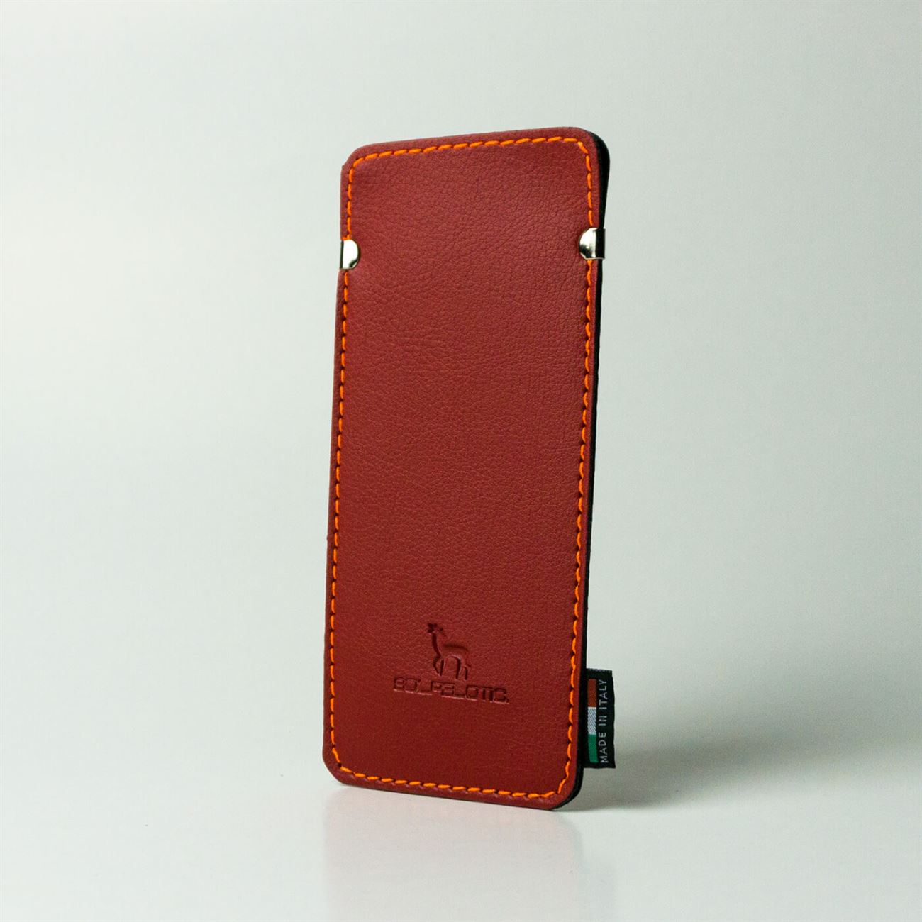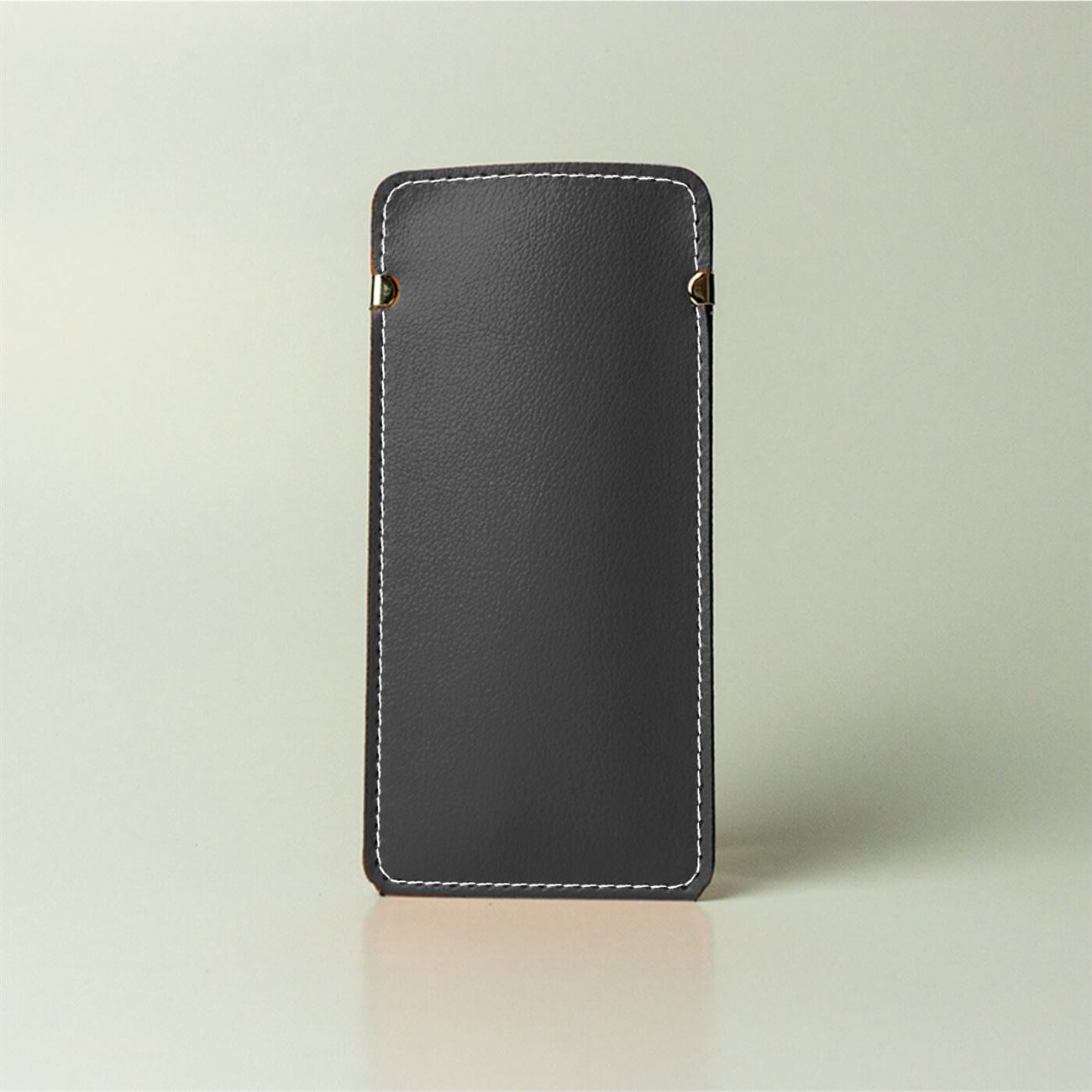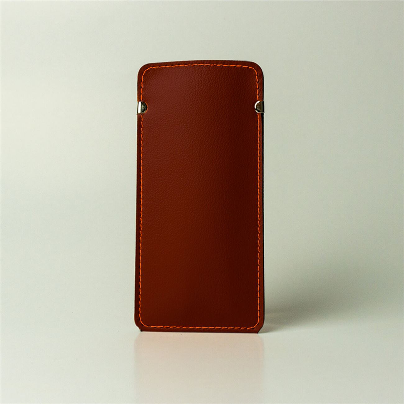Astuccio in ecopelle per occhialiDimensioni mm 75x160. Astuccio maschile da taschino per occhiali da lettura, con particolari metallici ai lati.
