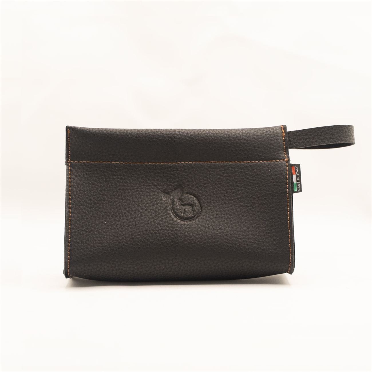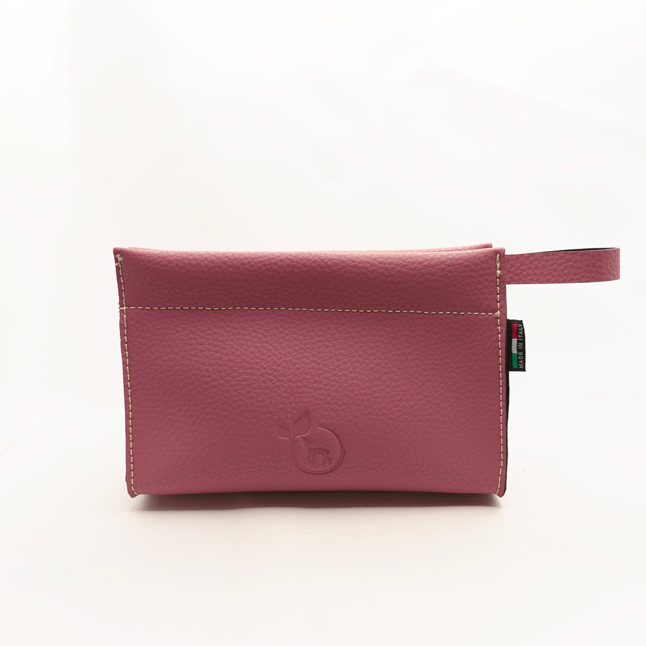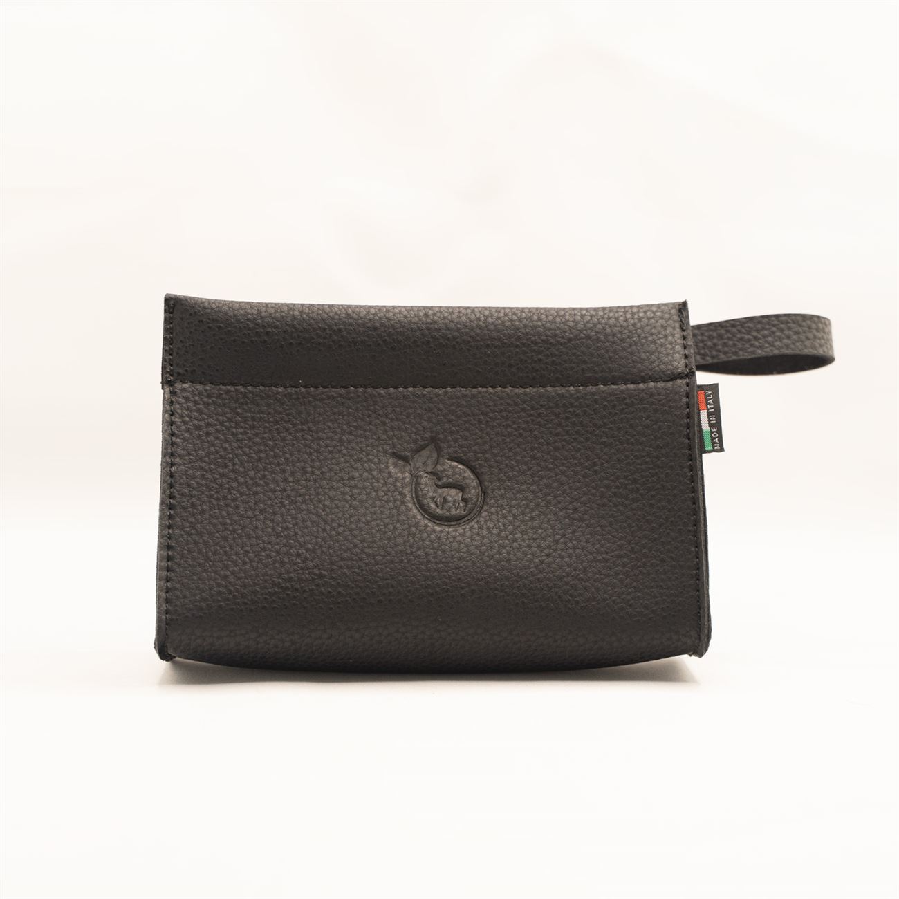 Astuccio a pochette in ecopelle eco-sostenibile effetto soft. Chiusura con magnete e laccetto per moschettone.