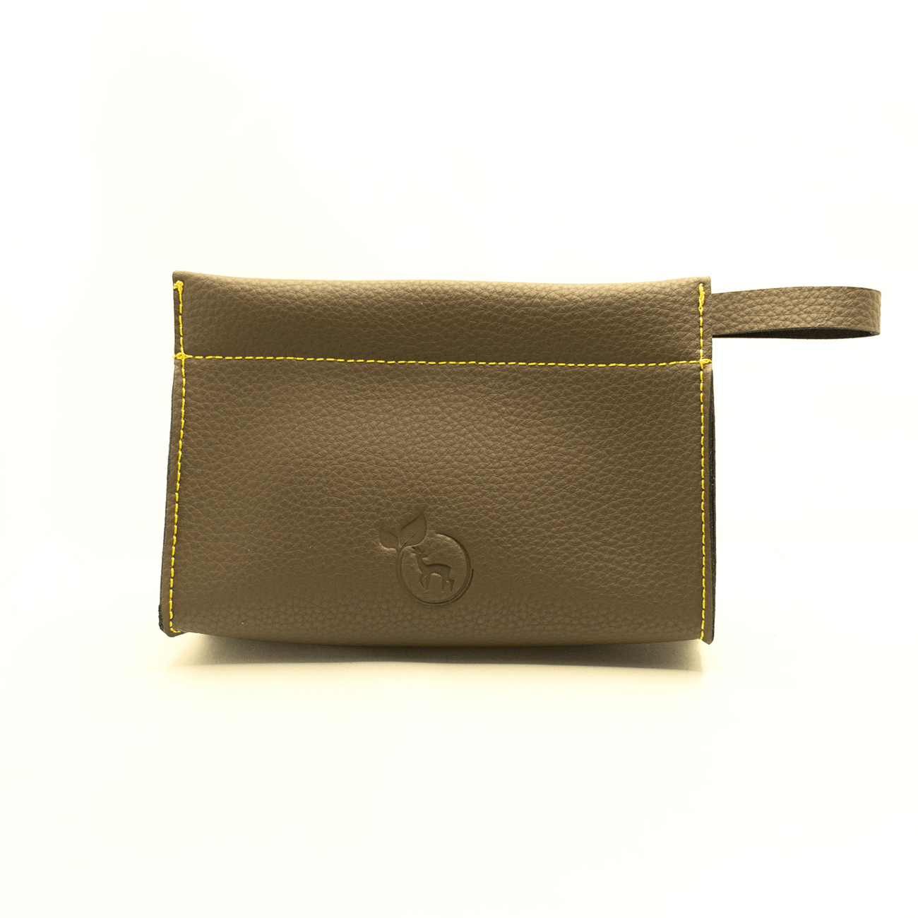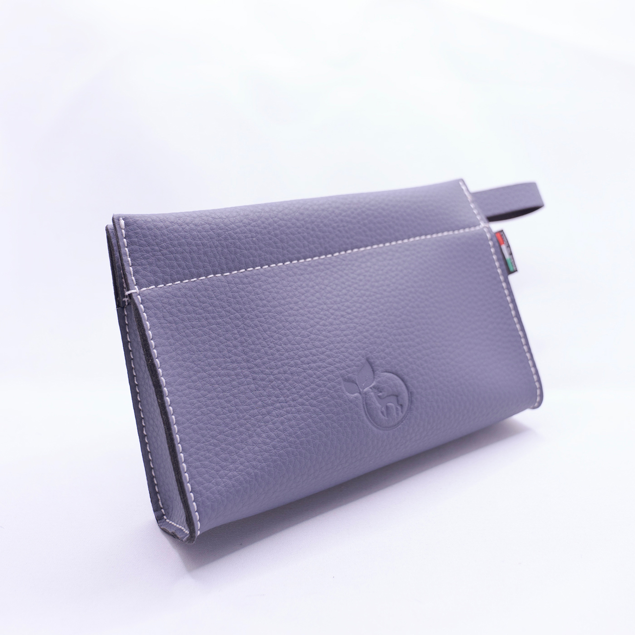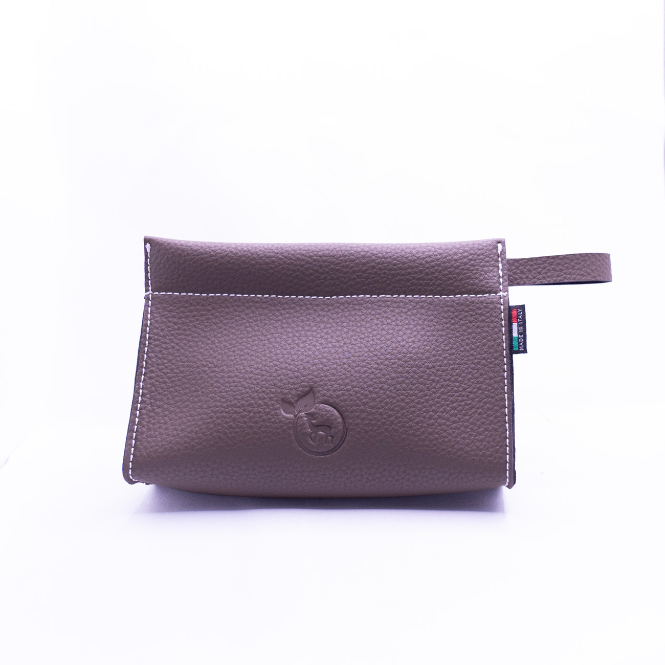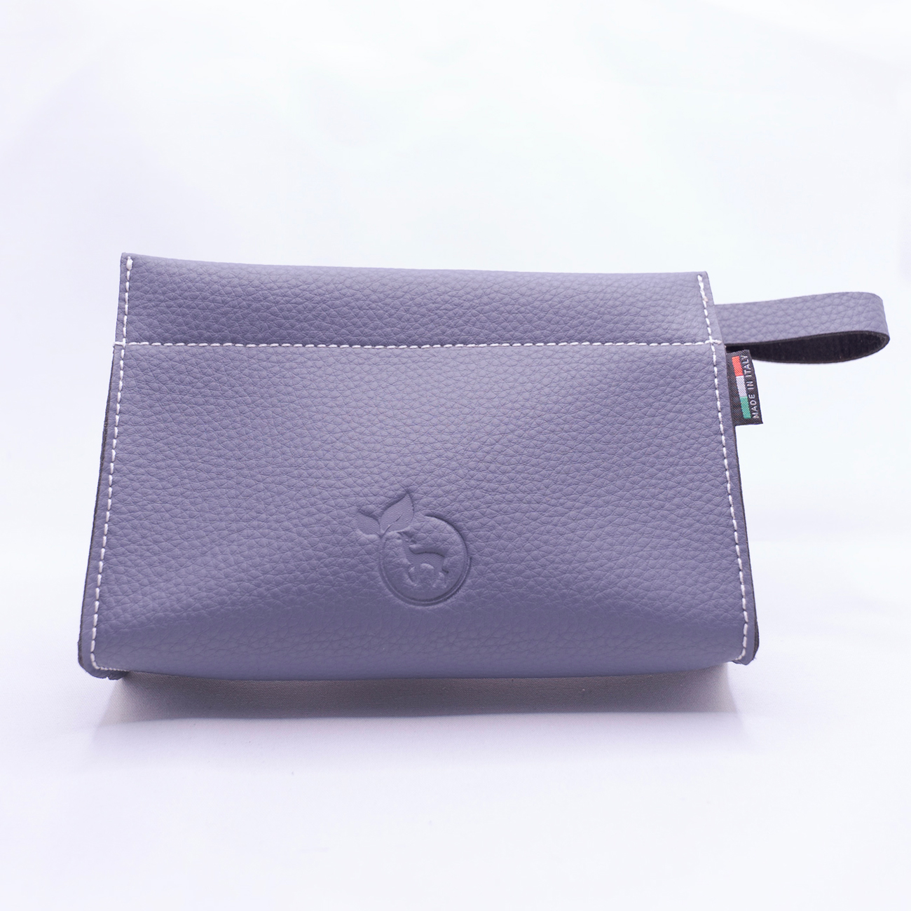 Astuccio a pochette in ecopelle eco-sostenibile effetto soft. Chiusura con magnete e laccetto per moschettone.