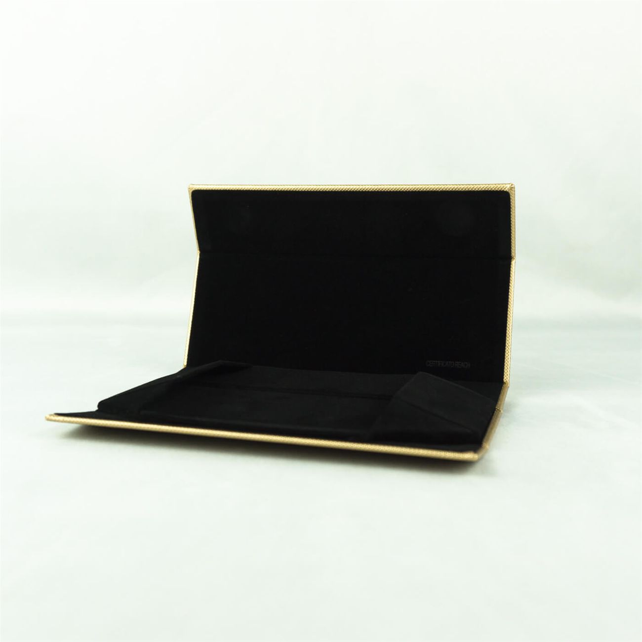 Dimensioni mm160x60x35. Astuccio pieghevole in metallo, con interno floccato e copertura in PU, per occhiali da vista. Chiusura a calamita.